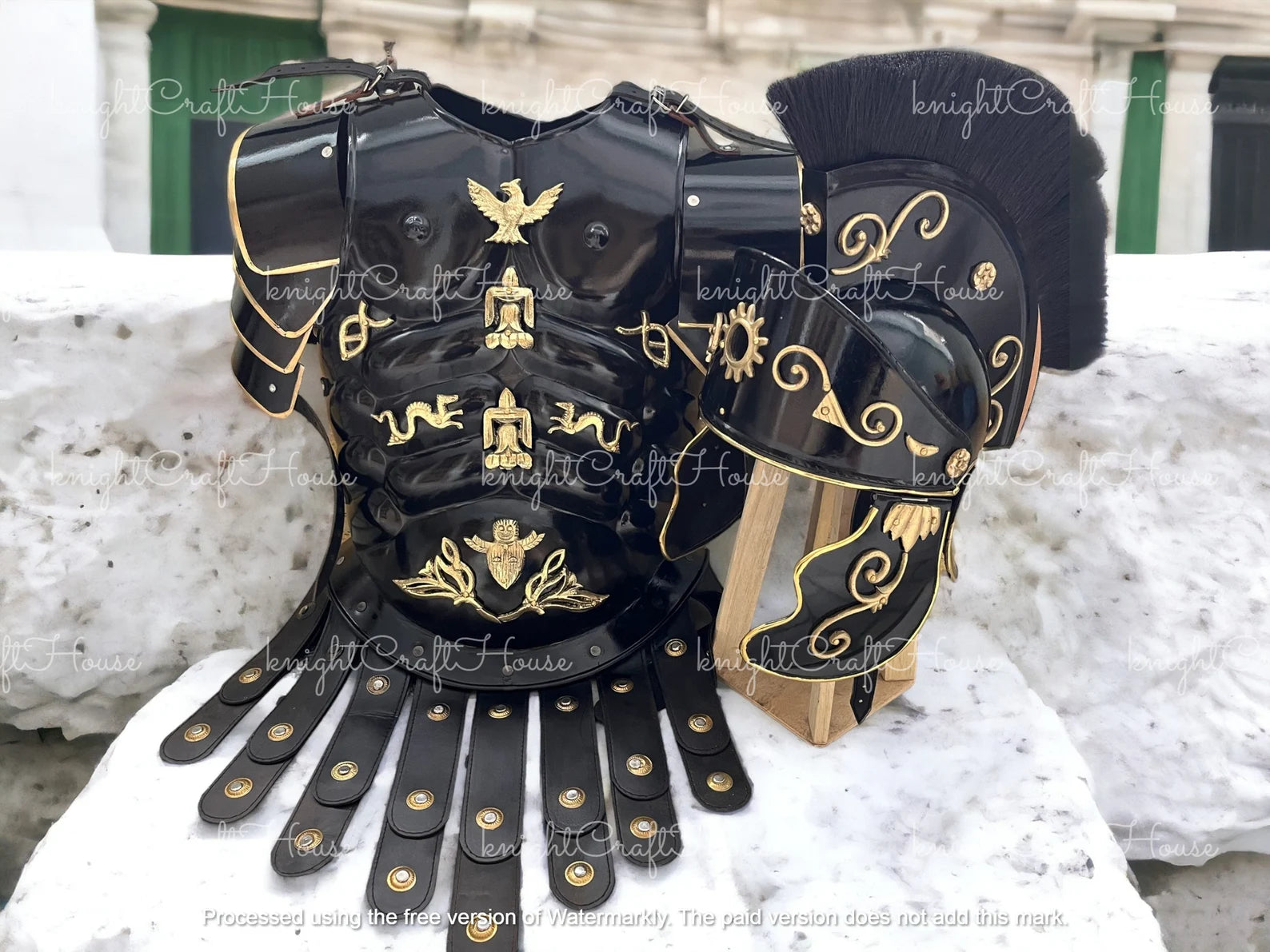 - ✔️ Includes front and back steel breastplate, helmet, and shoulder guards